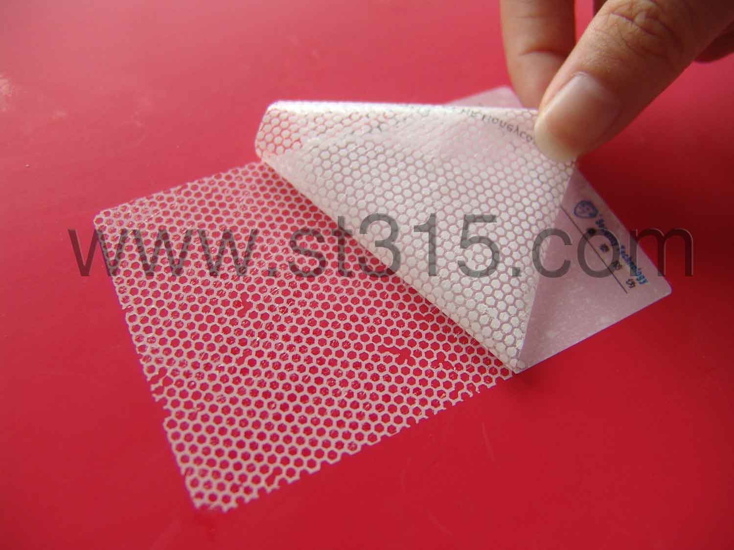桑泰5H214防偽材料被揭起后,會(huì)有白色的“蜂巢”狀轉(zhuǎn)移到承貼物表面,同時(shí)也會(huì)顯現(xiàn)在標(biāo)簽面材上,不可復(fù)原,以示已開啟。有效地阻嚇盜竊、竄貨等不法行為的肆行。