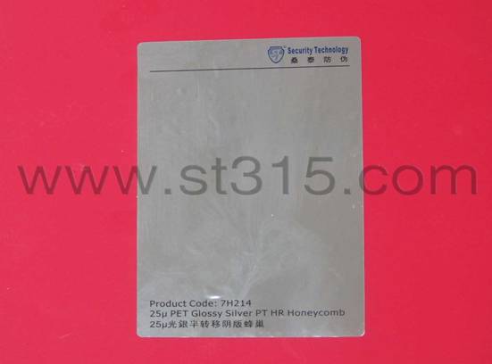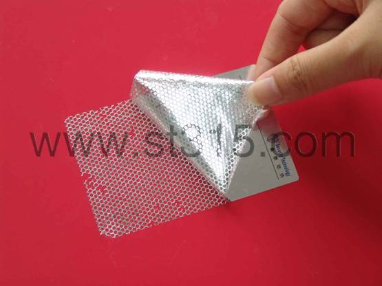 桑泰7H214防偽材料被揭起后,會有亮銀色的“蜂巢”狀轉移到承貼物表面,同時也會顯現在標簽面材上,不可復原,以示已開啟。有效地阻嚇盜竊、竄貨等不法行為的肆行。