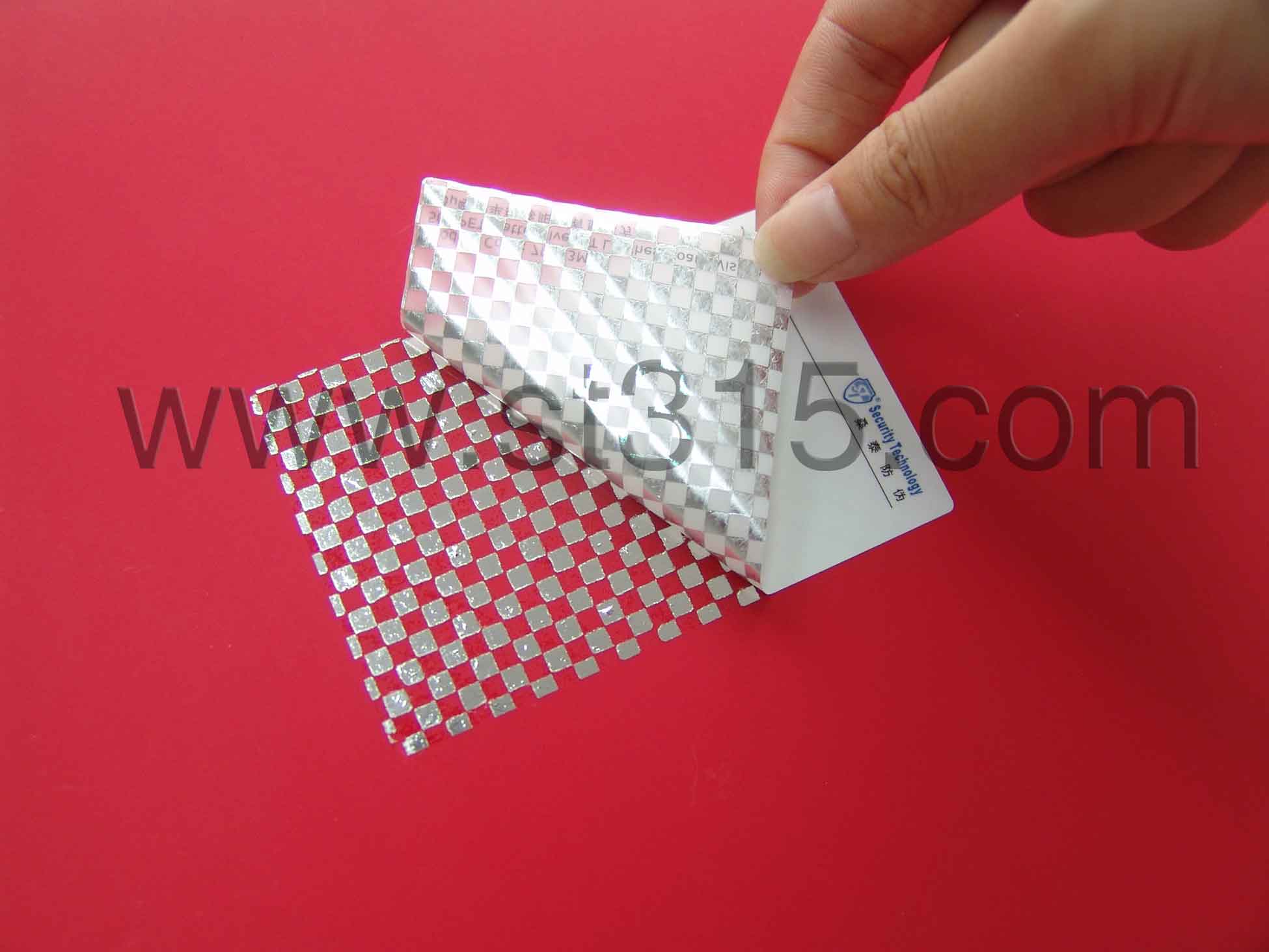 桑泰7P513M/V防偽材料在揭開前, 可隱約看到“方格”均勻分布在材料上;被揭起后,會有銀色實體的“方格”(3MM高*3MM寬)轉移到在承貼物表面,同時鏤空的“方格”狀也會顯現在標簽面材上,不可復原,以示已開啟。有效地阻嚇盜竊、竄貨等不法行為的肆行。