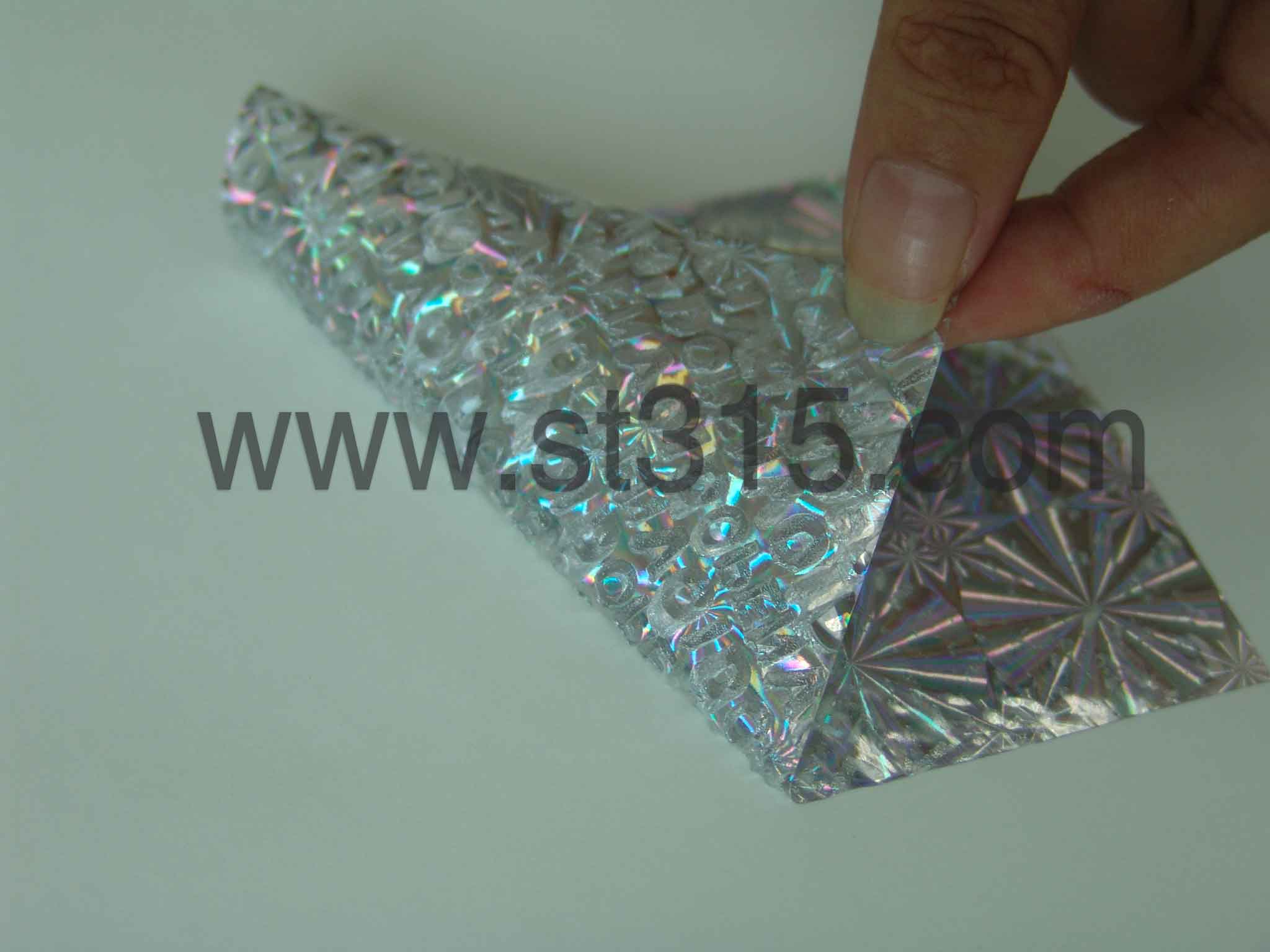 采用激光光刻全息防偽技術,材料表面呈現雪花狀且可來回閃動