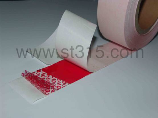 桑泰雙面VOID型雙面膠防偽封條是以PET膜為基材,兩面均涂布有膠粘劑并兩面都復合著底材,且兩面膠粘劑均含有防偽字模信息,主要用于塑料袋和信封上。常規顏色為紅色和藍色,底材可選用塑料膜或紙類。