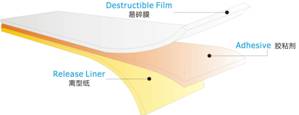 桑泰合成易碎紙被揭起后,將立即分層破損,起到防拆封、防盜竊的作用。主要用于防偽標簽的印刷,可模切成任何尺寸的標簽。