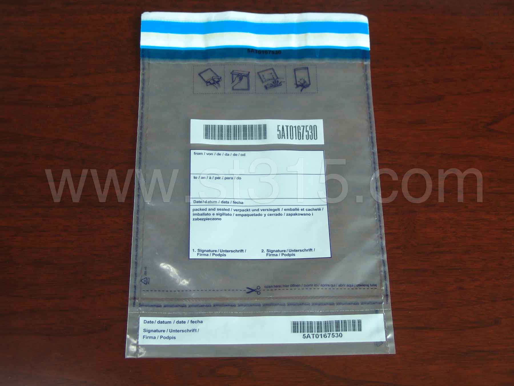 當安全密封袋一旦被打開,隱含的文字或圖案就會立即顯現在防偽封條上,并且永久的殘留在袋子上,以示已開啟。可有效保護內載物件的安全性。