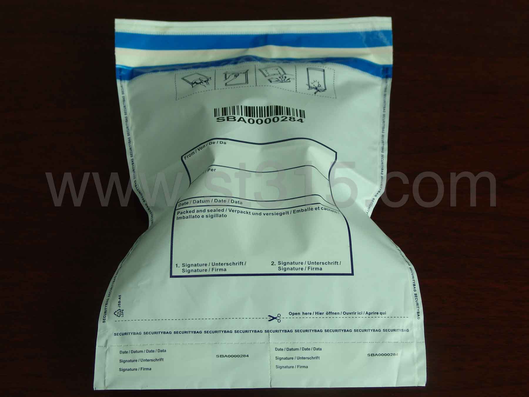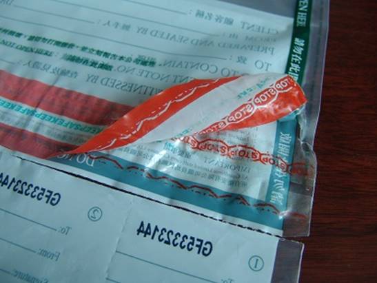 當(dāng)安全密封袋一旦被打開,隱含的文字或圖案就會(huì)立即顯現(xiàn)在防偽封條上,并且永久的殘留在袋子上,以示已開啟。由于袋子不透明,可更有效地保護(hù)內(nèi)載物件的安全。