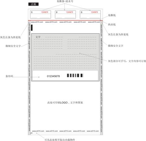 · 可增加易撕條,易撕條上可加印流水號(hào)和條形碼用以留存物流等相關(guān)信息